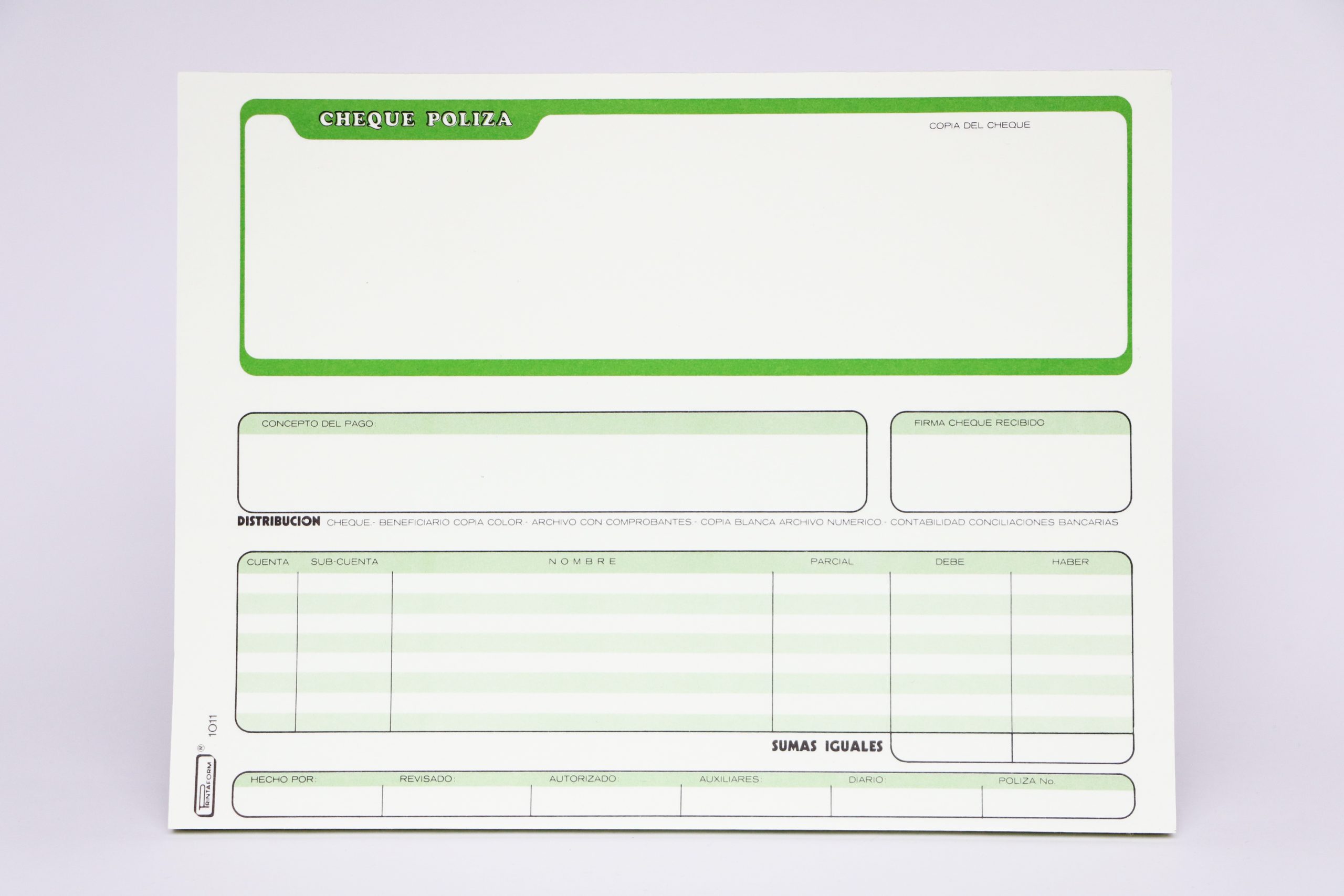 POLIZA DE CHEQUE 1011 PRINTAFORM 1/2 OFI. 25 JGO. E(3)(144)